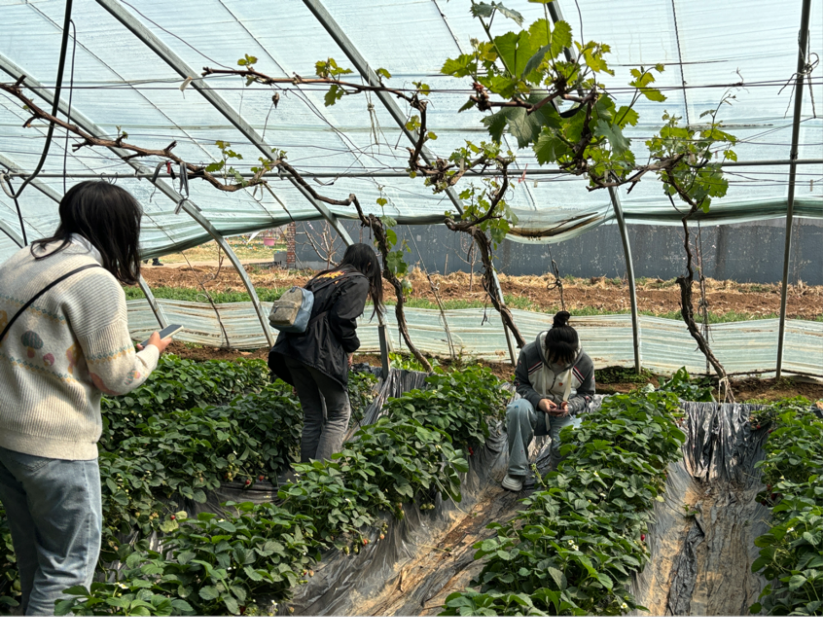 下午2时,调研团队前往平谷区金海湖镇郭家屯村,实地调研了博士农场金海湖生态园和当地休闲文旅品牌小溪谷,并与村两委就农业和文旅产业发展开展交流座谈。学生党员走进大棚种植区,学习土地起垄、作物生长等知识,了解到科技助推农业发展的广阔图景,更深刻地体会到了新时代大学生亲历劳动过程,树立正确劳动观念的重要性。高琼表示,“增强学生劳动本领,发挥劳动的育人功能,学生党员要带头做好劳动实践,发挥引领作用。”