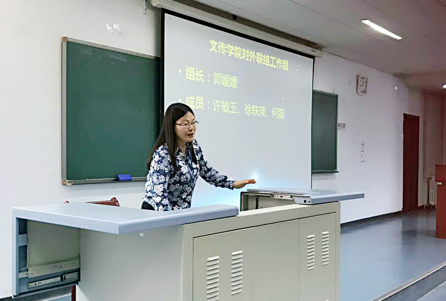 郭媛媛首先向同学们介绍动漫疯 国际交流合作工作的基本状况,并向大家介绍院对外联络组工作职责与组成情况。