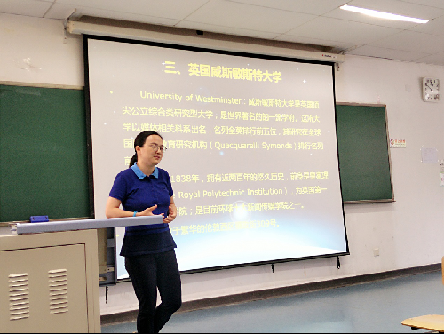 根据对口负责推进的项目,工作组的许敏玉、徐轶瑛和何磊三位老师分别介绍了美国天普大学和新泽西城市大学,英国威斯敏斯特大学,美国新泽西中小学实习和北京国际交流中心暑期海外实习等项目的概况,与学院合作的情况,派出学生的年级与人数,以及费用、学分、英语要求等等。