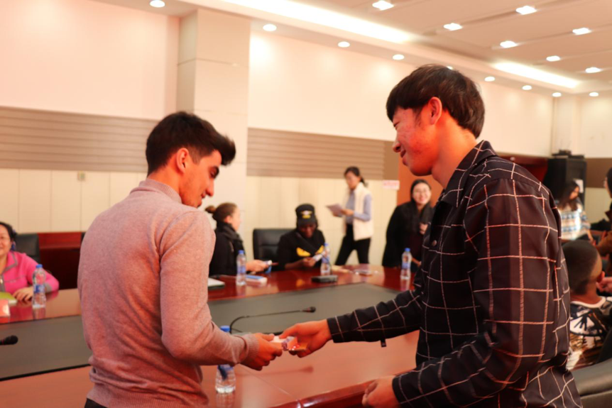 接着,留学生们用流利的中文作了自我介绍,并表达了对动漫疯 乃至中国的喜爱之情。其后, 2016级汉语国际教育班的学生向留学生们赠送了极具中国特色的小礼物。