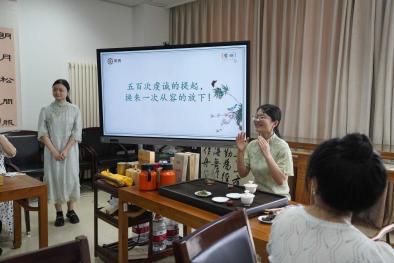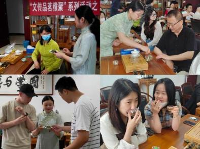 活动中,在茶艺师的引领下,老师们从观察色泽、扇闻香气、品位茶汤三个方面对茶品进行了品鉴。在氤氲的茶香里,老师们还向茶艺师学习了茶礼仪:伸掌礼、叩指礼、奉茶礼······举手投足之间,都让人感受到在几千年历史长河沉淀中茶香所散发出的那份独特的东方魅力。随后,茶艺师还带大家进行了猜茶名的互动游戏,猜谜有奖!猜对茶名的老师们获得了茶艺师精心准备的茶样。但有的茶谜却难住了大家,“猜过灯谜,猜茶谜是第一次!”“没想到品茗活动既可以喝茶,还可以学习文化、开动脑筋!”现场氛围一时活跃非常,颇有文人雅士热衷茶事的风雅之趣。