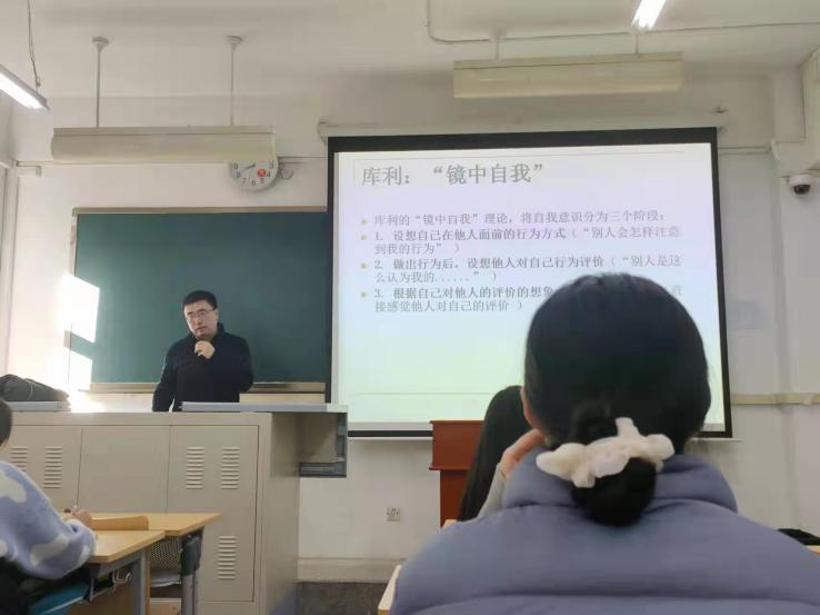 11月10日上午,在明辨楼404教室,大家观摩学习了传播学系教师熊壮的《传播学概论》。课堂上,熊壮老师引用《阿Q正传》巧妙自然地进入教学主题,讲述了人如何认识自我,介绍自我的发展。从库里“镜中自我”理论到米德的“主我”与“客我”,再到认知失调理论,在讲解知识的同时,熊壮老师还运用大量丰富又生动的案例来加深同学们对概念的理解和记忆,引导大家对相关问题进行深入思考与积极讨论,给学生提供了充足的探索空间,让大家能够自主参与、主动学习。
