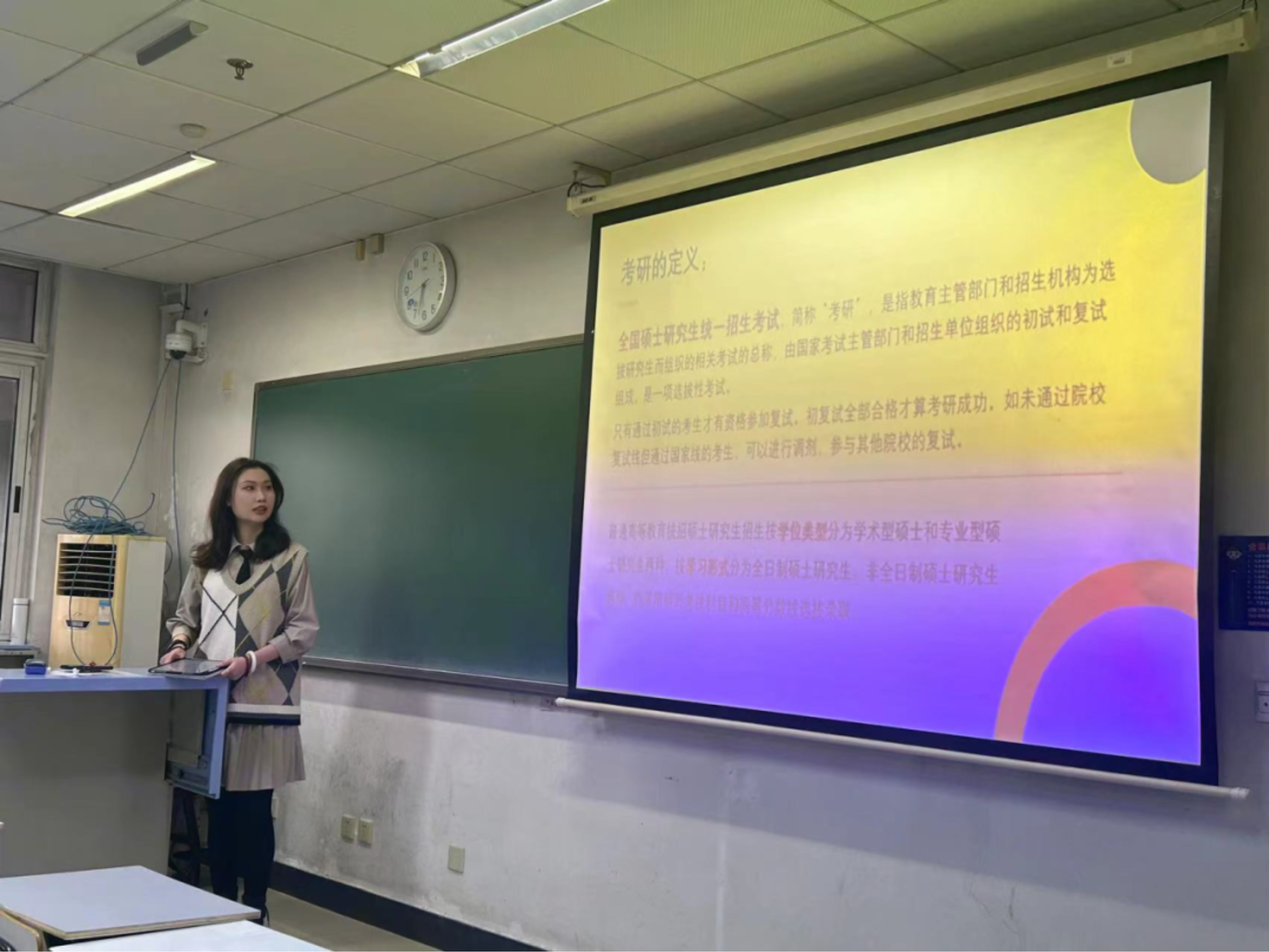 第一讲于4月29日在博学楼611顺利开展,本讲主题是考研基本信息介绍,我们邀请到了2023级研究生王潇钰围绕考研基本信息以及专业情况,招生计划等进行展开讲解。