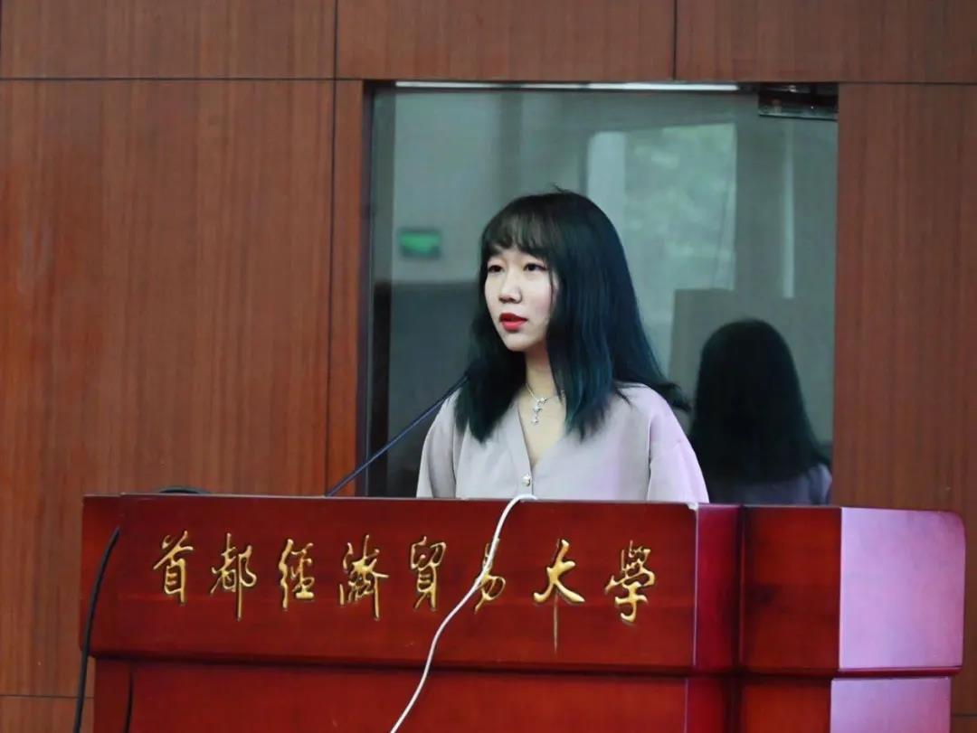 首先,兼职辅导员贺琦为新生讲解了学生手册上的部分内容。她分为学生奖励管理办法总则、评奖评优、社会实践和学科竞赛这四部分为大家解读了2020级新生的《学生手册》,帮助新生们更好地了解未来四年除了课堂学习外的学习方式和发展方式。