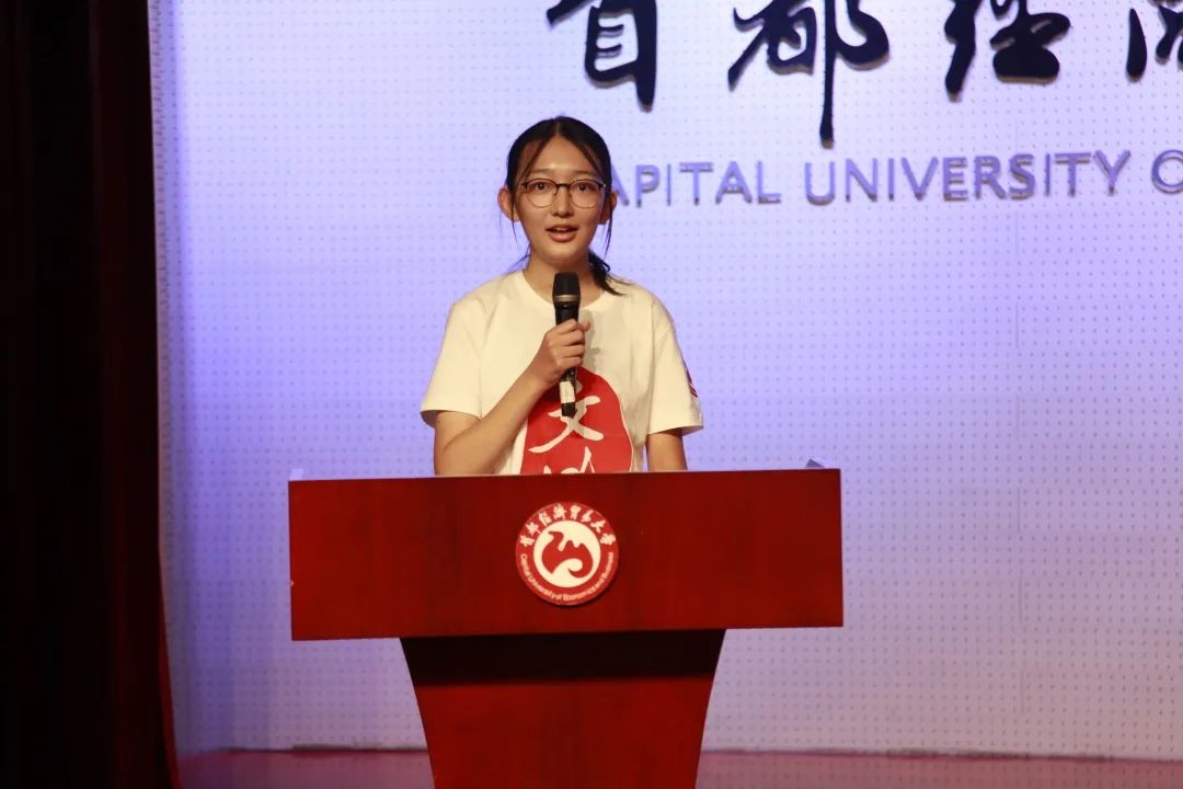 陈婉与贾博凝同学分别作为硕士研究生与本科生的新生代表上台发言。两位同学在发言中都提到了学习的重要性。陈婉表示,要在未来三年的学习生活中领略导师的理念精神,感受学术研究的魅力,要对自己有要求、保持初心,去实现成长感、价值感;贾博凝表示,作为刚刚踏入大学校门的新生,对未来十分憧憬,渴望在未来四年努力展示自我,带着赤诚之心去开拓、书写辉煌。