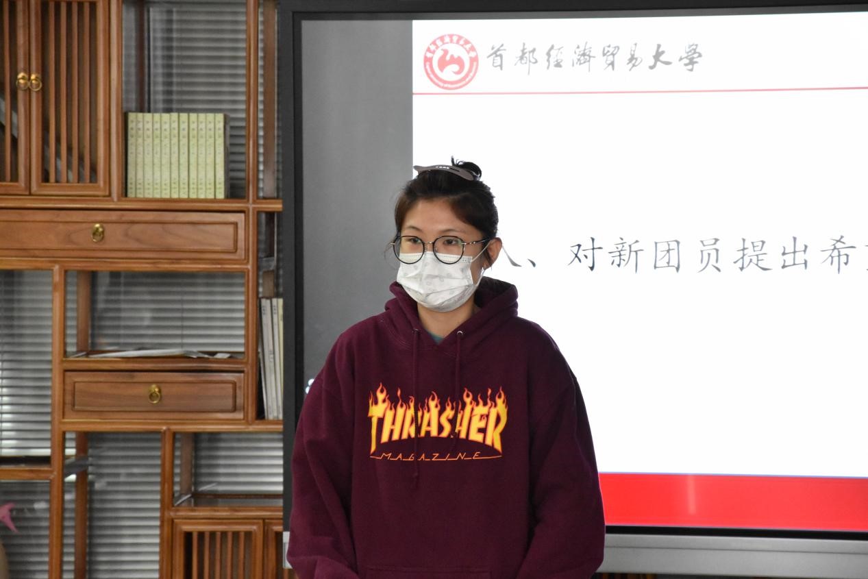 首先,由侯子怡宣布新团员名单:18级传播学一班张公泽和19级传播学三班董李,光荣地加入了中国共产主义青年团。