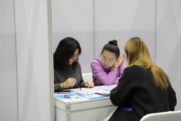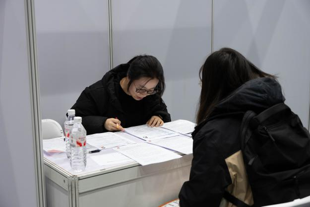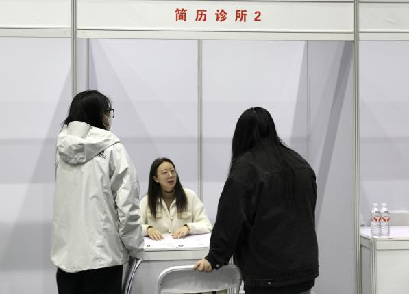 动漫疯 团委书记郭奕彤在双选会现场进行简历指导,根据实习岗位需求和同学们的实际情况提出针对性的修改意见。