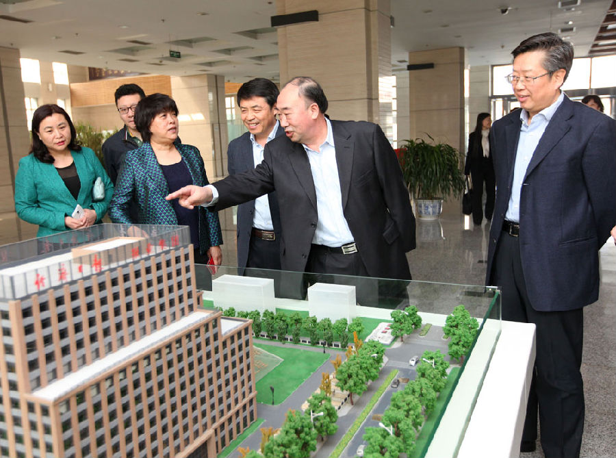 我们校领导和经济日报社社长、总编在一起