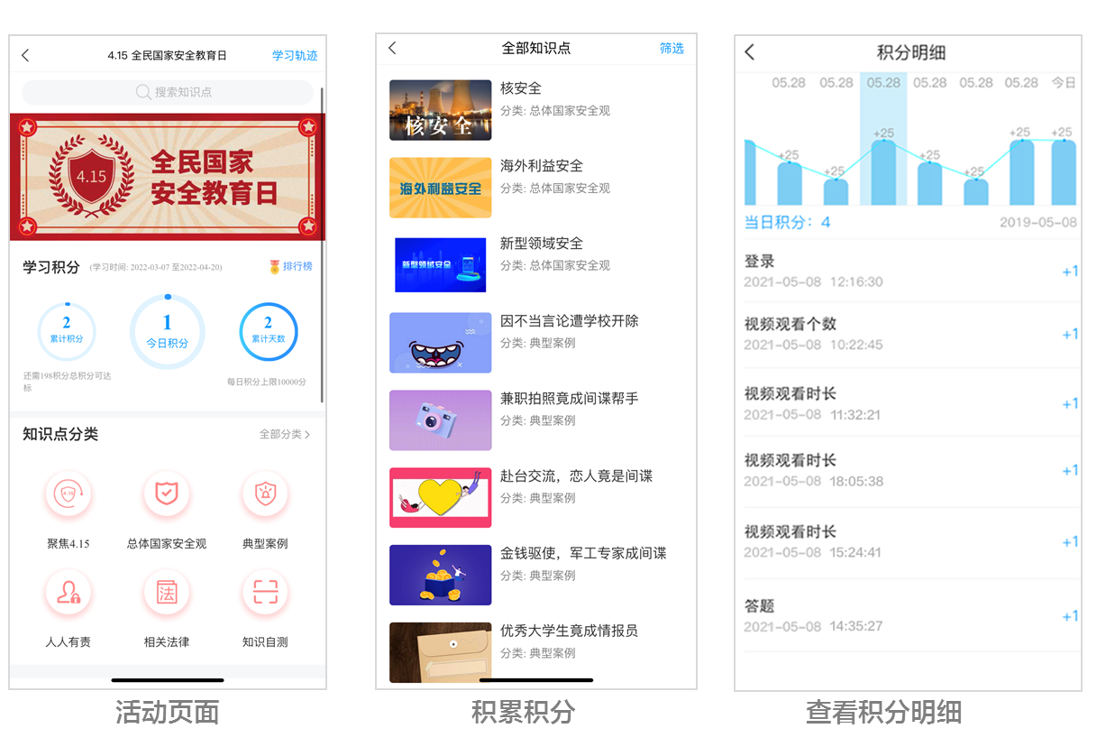·活动页面内可自由学习相关知识点,观看视频、了解案例、知识自测,所有学习行为均可获得相应积分;