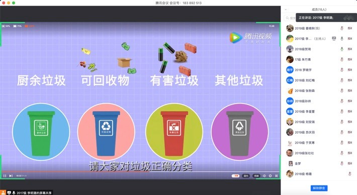 新版《北京市生活垃圾管理条例》于2020年5月1日起正式实施。为认真贯彻习近平生态文明思想,积极响应开展垃圾分类的号召,充分发挥党员在垃圾分类工作中的先锋模范作用,研究生党支部在前期党员自学、实践基础上,于5月27日13:30开展了“垃圾分类,党员先行”线上主题党日活动。支部全体党员、入党积极分子参加了活动,活动由研究生党支部书记李明潞主持。