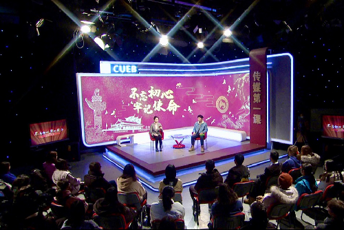 首期访谈主题为“我的接力跑”,邀请2018级传播学3班学生刘嘉量作为访谈嘉宾。在访谈开始之前,全体观众观看了国庆任务纪念短片“我和我的祖国共奋进”。在场的每一位观众都感受到了任务参训人员们的辛苦与不易,敬佩之情油然而生。刘嘉量作为 “不忘初心”群众游行方阵的一员,对这次活动更是深有感触。他在访谈中分享了自己参与此次活动的初心。在主持人问到训练中遇到的困难时,他向观众讲述了自己是如何坚守使命的。他表示在亲身参与了游行活动后,体会到了更真切的爱国情感。