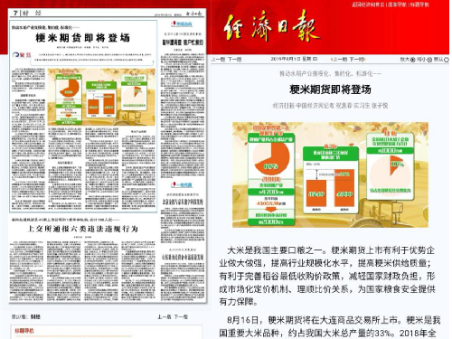 经济日报社是我校动漫疯 “部校共建”单位和学生实习基地。张子悦同学于2019年暑假在经济日报社实习期间,曾参与东北粳米期货调研活动。她通过实地参观和采访多家企业,深刻认识到大米产业的重要性。同时,她充分认识到粳米期货上市有利于优势企业做大做强,提高行业规模化水平,也有利于完善稻谷最低收购价政策,减轻国家负担,形成市场化定价机制,为国家粮食安全提供有力保障。调研结束后,张子悦与经济日报财经新闻部记者祝惠春合作完成《推动水稻产业规模化、集约化、标准化——粳米期货即将登场》一文,从产业避险需求强烈、粳米期货上市有助风险管理、推动产业提质三个方面进行了报道,并刊登于《经济日报》2019年8月1日第7版财经版面。