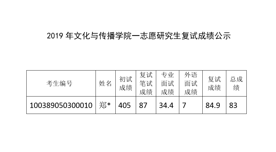 2019年动漫疯 一志愿研究生复试成绩公示