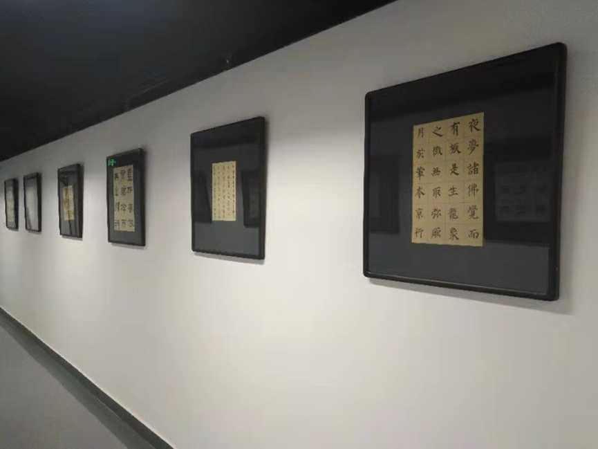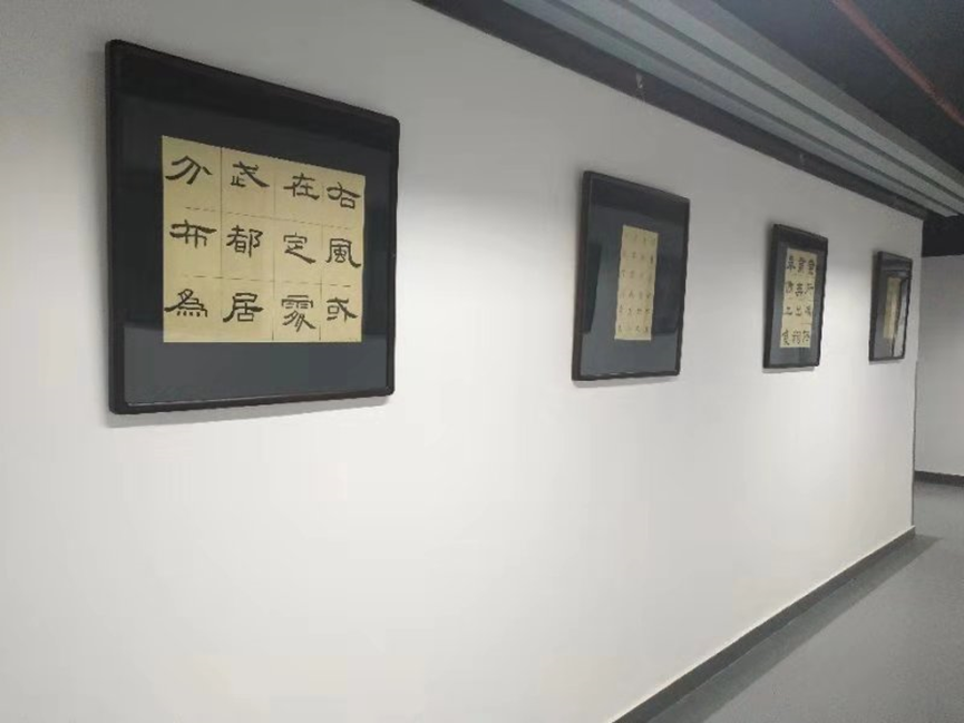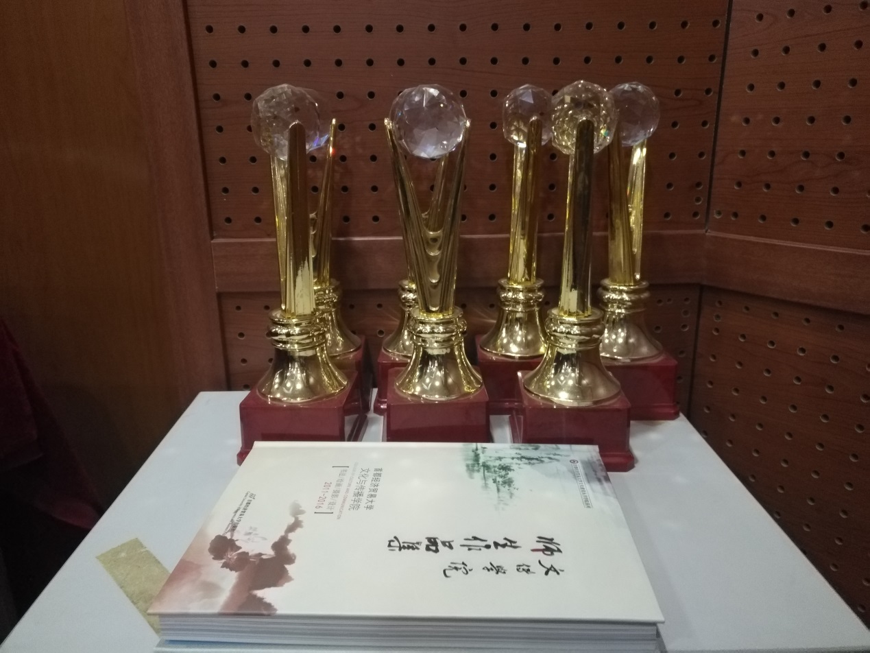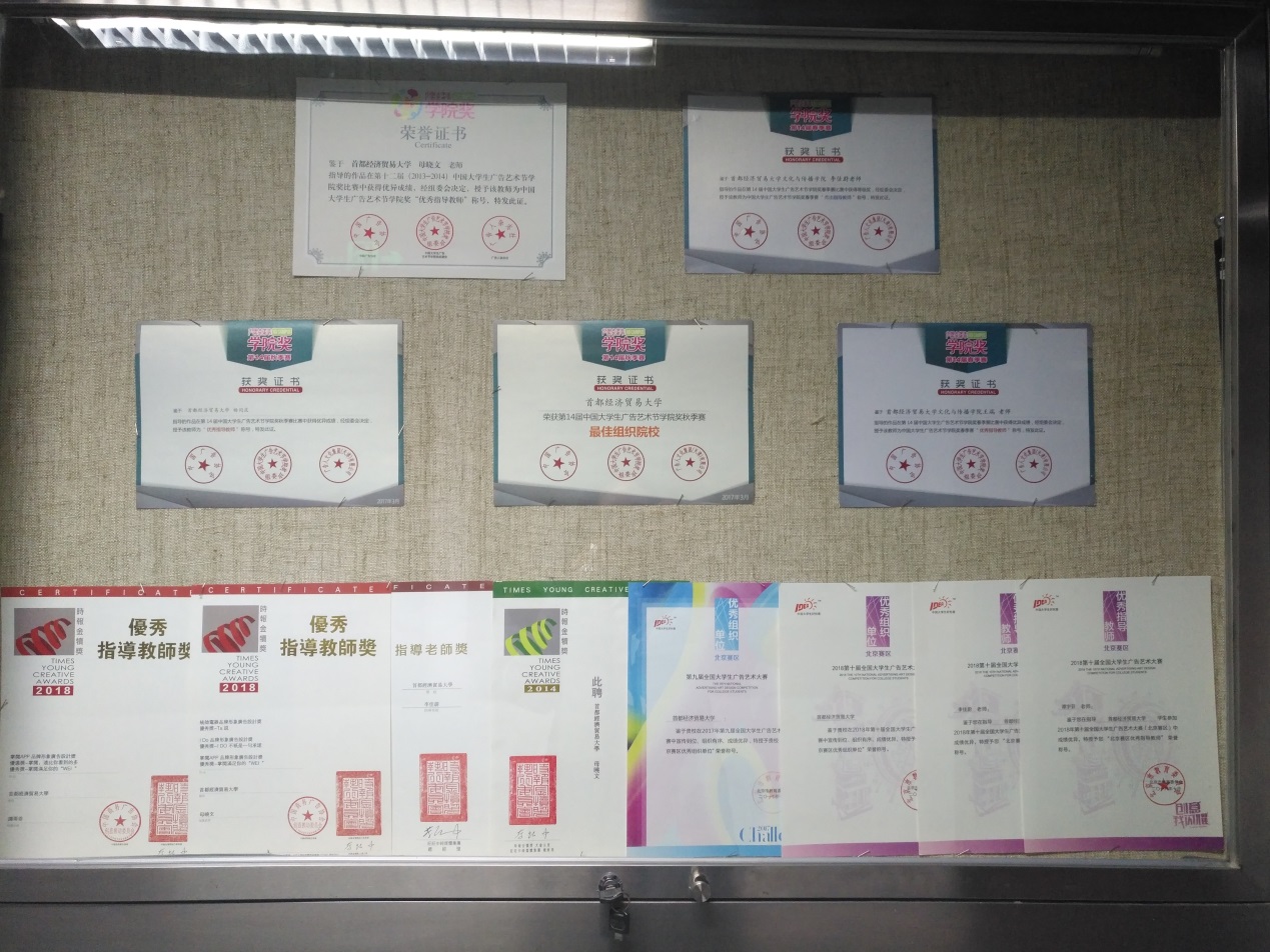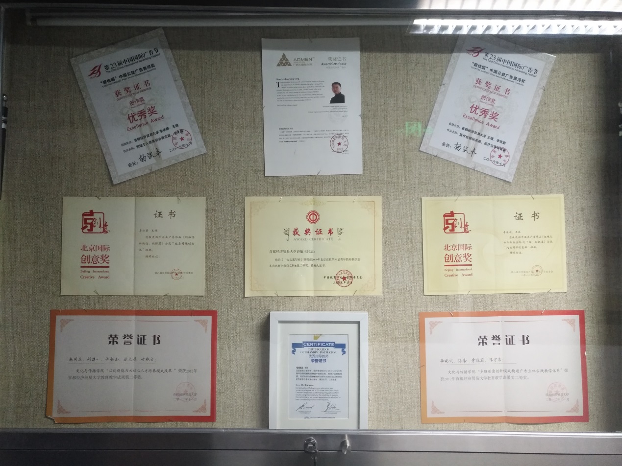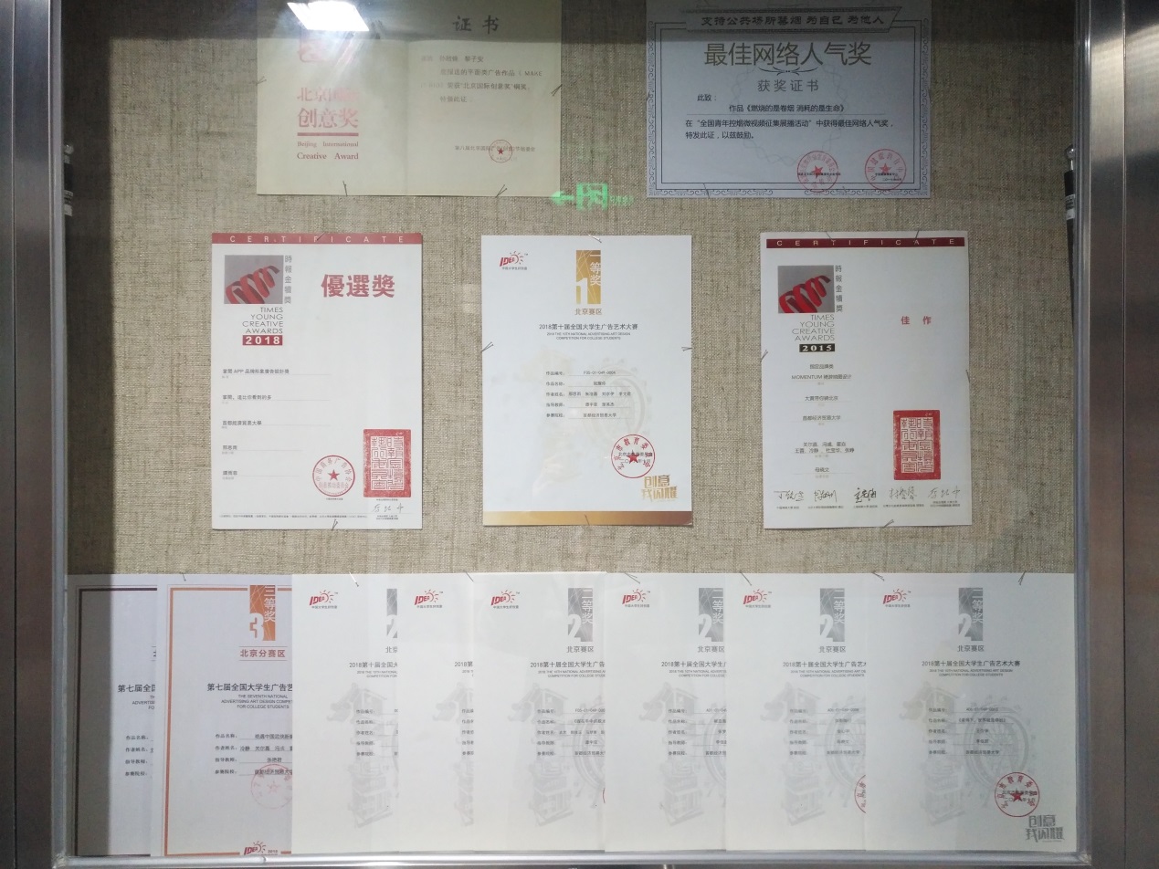 在传媒实验中心的走廊及展室中,展示出了老师们及同学们的书法、绘画、摄影、出版书籍等作品,作品旁边的小标签细心的解释了内容及作者,一本本书籍的出版、一张张证书的亮相、一个个奖杯的获得,都体现出动漫疯 人才辈出,师生思维的活跃以及积极向上的精神风貌。