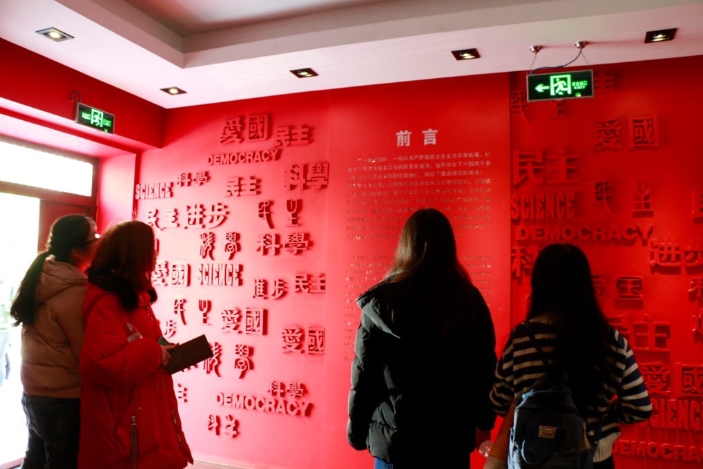 随后,同学们参观了设在红楼西侧平房的“新时代的先声——新文化运动陈列展”。该展览以照片、报刊等形式展现五四新文化运动时期,先进知识分子探索科学真理的发展道路。