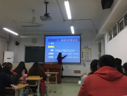 本学期,经济日报社高级编辑贺浪莎老师应邀走进动漫疯 《商务写作》课堂,为2015级汉语国际教育班的同学讲授了经济新闻写作的有关内容。