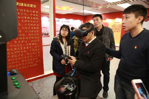 20171117日,文传学院理论学习中心组和行政党支部教师党员一同参观了学校新建成的党员之家,并亲身体验了党员之家内新引进的虚拟现实系统,运用先进的VR头盔等虚拟现实设备,通过沉浸式体验,深度体验红军四渡赤水等革命关键历史时刻的虚拟现实环境,感受高科技支持下的新时代革命教育