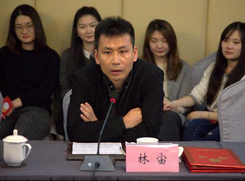 在导师讲话环节,许敏玉首先代表校内硕导发言。她希望学生能以积极、主动的态度,挑选和设计好自己的专业实习、实践,同时也恳请校外导师在研究生学习与职业规划中,发挥更多校内导师所不能发挥的作用。
