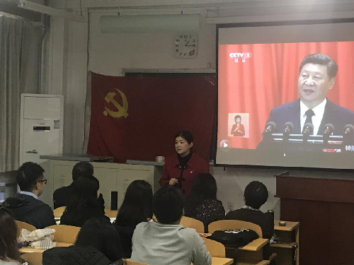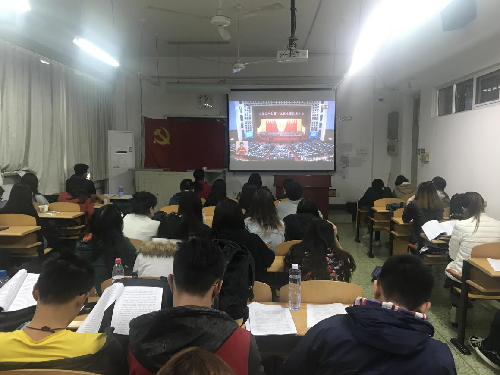 2017年10月18日上午九时,中国共产党第十九次全国代表大会在在人民大会堂正式开幕,中共中央总书记习近平代表第十八届中央委员会向党的十九大作报告。中午十二点半,动漫疯 党总支书记付琳、动漫疯 党总支副书记、院长石刚、各教师党支部书记,部分教师党员带领全体学生党员和入党积极分子一起观看了十九大开幕会录播,师生党员认真学习党的十九大会议精神。付琳也代表党总支部对下一阶段开展十九大报告的理论学习研讨工作进行了部署和要求。