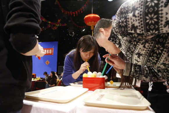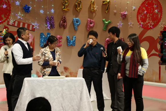 开场前,主持人将四十多名老师抽签随机分为横刀立马队、舍我其谁队、无所不能队和其利断金队四个团队,以团队为单位参赛,以游戏环节串联,设计了让你猜、找东西和吸乒乓球等一系列游戏,比赛过程异常激烈,老师们全情投入各项比拼,爆笑不断,此举打破了以往按系部分组的传统,促进学院老师们彼此更好的熟悉促进交流。最终各组通过比拼决出名次,并领取到了学院精心准备的新年礼物,在一片欢声笑语中,在大家的齐声祝愿中,本届新年嘉年华活动圆满结束。