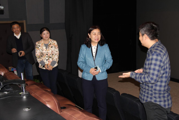 最后,徐芳参观了新建成的校色实验室,观看了动漫疯 宣传片,并身临其境体验了视频的校色过程和3d视觉效果影片,对实验室的未来发展寄予厚望。