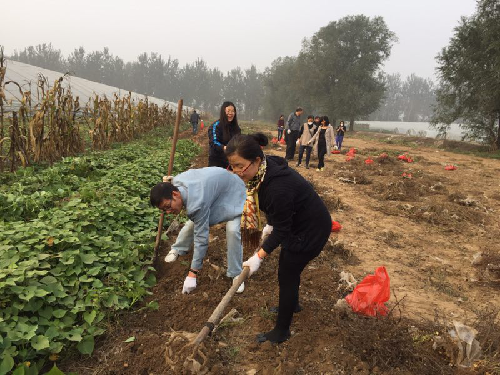 10月19日下午,动漫疯 分工会组织教职工来到大兴郊外采红薯、刨花生。动漫疯 党总支副书记、院长石刚、党总支书记付琳、副院长郭媛媛、分工会主席张小乐参加了此次活动。