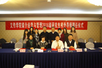 11月5日下午,动漫疯 在北京商务会馆举行了第二届媒介经营与管理专业校外硕士生导师见面会。动漫疯 党总支副书记、院长石刚、分管研究生工作的副院长郭媛媛、四位校外硕士生导师杨柘、周永萍、徐颂东、张颖以及校内导师杨同庆、张小乐、许敏玉、朱琳、办公室主任张素娥参加了此次会议,同时参加会议的还有2015级和2016级全体硕士研究生。本次会议由副院长郭媛媛主持。