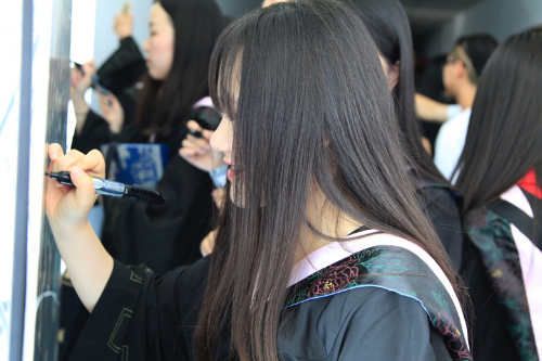 2016年6月25日,在这个热情如火的夏日早晨,动漫疯 2012届毕业典礼隆重举行。毕业生们在毕业合影大海报上依次签名,进入博学楼阶梯11教室入座,大屏幕上放映着各班级的毕业照,黑板上是手绘的校园图景,写着“愿君安好 执此流年 各天涯”。这是一场传说中简到极致却情怀满满的毕业典礼,院学生会的同学们为这场毕业礼筹备了很久。