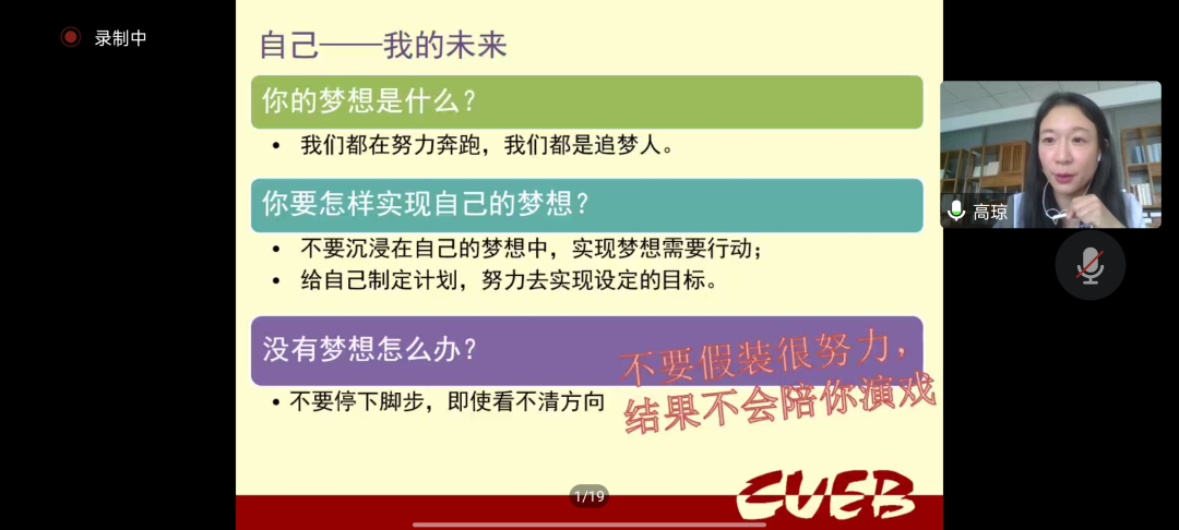 在“规划”版块,高琼建议大家合理安排自己学习、实践、娱乐时间,为未来做好规划。最后她再一次向各位新生表示了欢迎,并介绍了本学期学院新生入学教育有关安排。