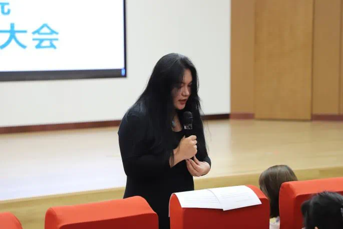 竞选发言结束后,党总支副书记高琼、专职辅导员袁心玥、兼职辅导员王茜分别发言,她们表达了对团学组织成员们的感谢、肯定与期许,并表明希望在新一届团学负责人与部长们的带领下,动漫疯 团学组织能够越来越好。“文传人,在发光”