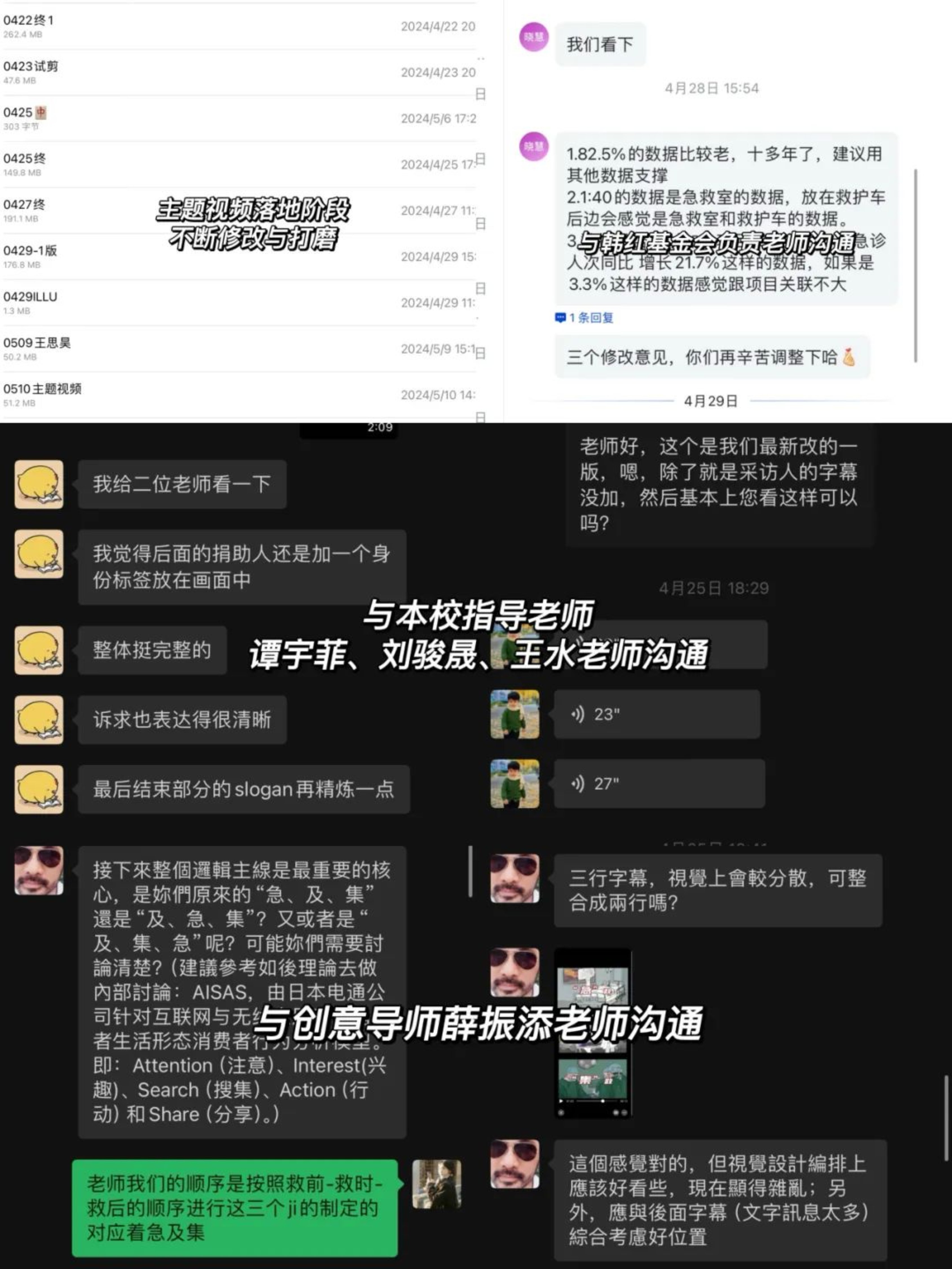 2分钟的主题视频脚本="十余次小组集体脑暴开会+小组内部无数次反复打磨+忙到半夜老师们的倾心指导+伙伴们分工协作一起将构想变为现实+无数次崩溃后重振信心......当投身于《急救在乡间》主题视频创作时,我们深感这是一次既充满挑战又独具意义的旅程。