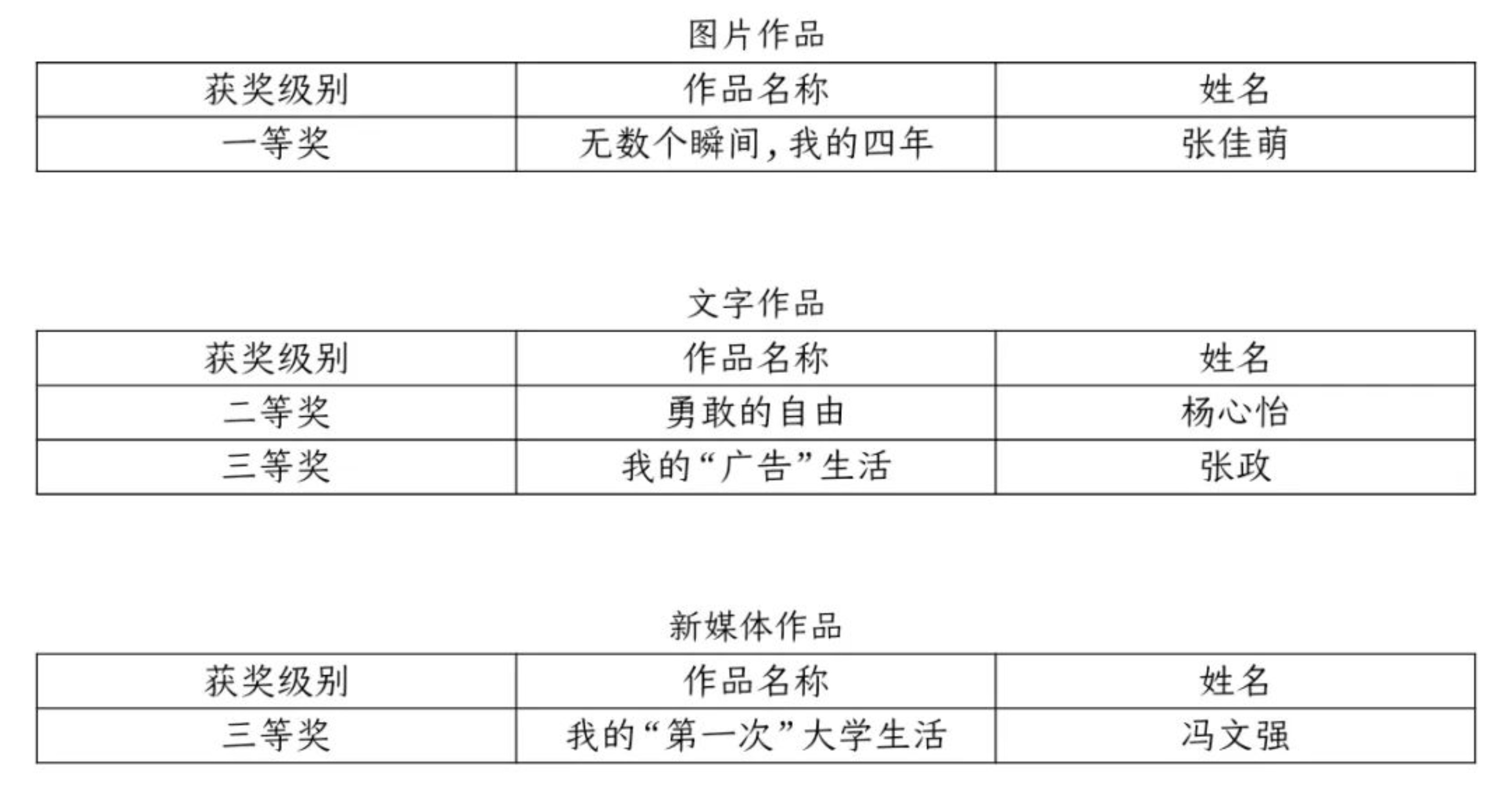为切实做好毕业年级学生思想政治教育工作,深入推进毕业生“爱国情、母校情、师生情、同学情、校友情”五情教育,全面营造温馨、有序的毕业氛围,引导毕业生在回顾大学生活中提升成就感、归属感、仪式感,增强毕业生爱校情怀和感恩意识,党委学生工作部于2024年5月开展“我的大学生活”主题创作大赛活动,经过评审组多位老师的共同评审,最终评选出各类作品一、二、三等奖。