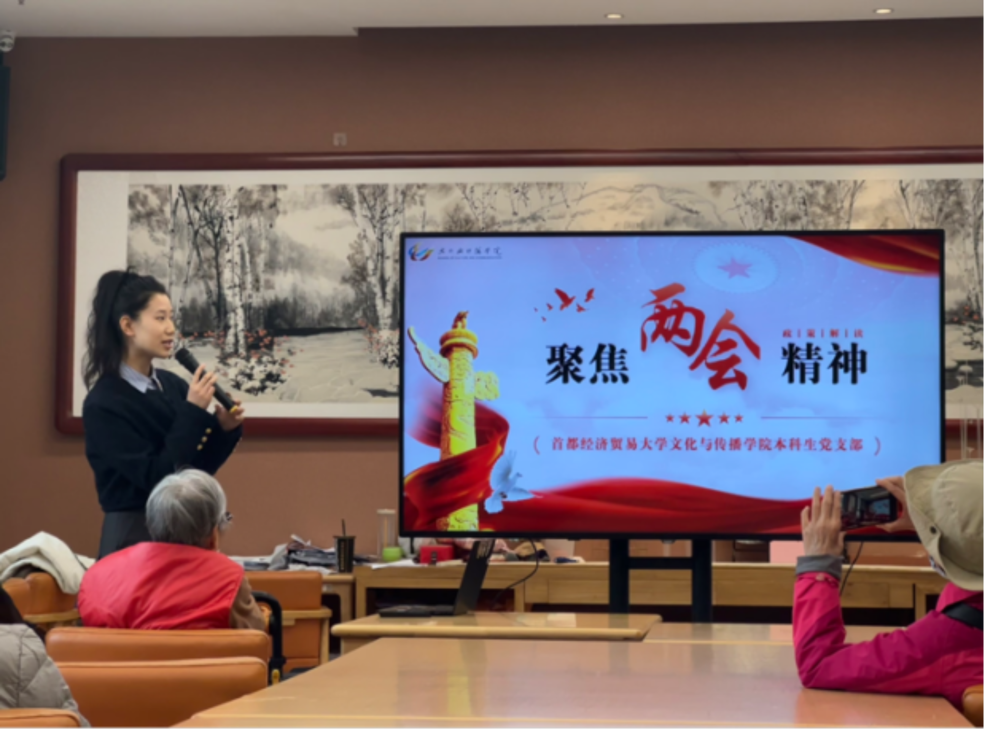 随后,本科生党员李璎书就参加服贸会志愿服务经历进行分享。她表示,在志愿服务过程中,不仅结识了很多志同道合的志愿者伙伴,还对国家经济发展有了更加深刻的认识,真切体会到作为新时代的青年,我们应当切实履行自身义务,肩负起时代赋予的责任,以实际行动服务国家发展大局。