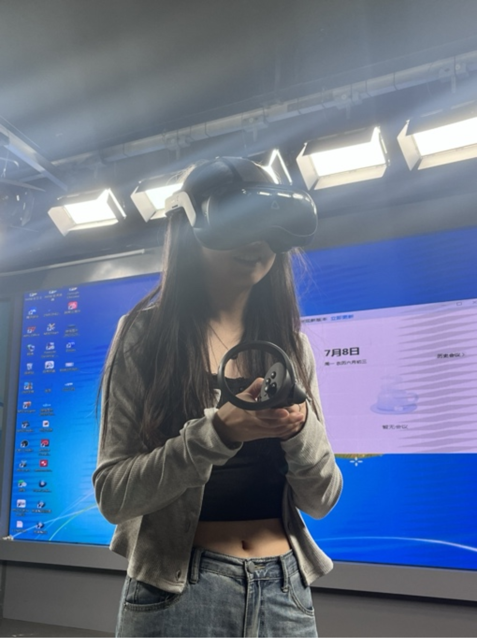 戴上VR头盔,你就能“身临”新闻现场,实现空间上的“零距离”,让新闻“活”在眼前。“初识全景”第一课,实习生在演播室佩戴VR设备,体验中国经济网“‘飞临’探秘冬奥场馆”“全景体验‘永不落幕’的线上世园会”等全景漫游导览系统,感受全景技术赋予新闻的沉浸与交互。