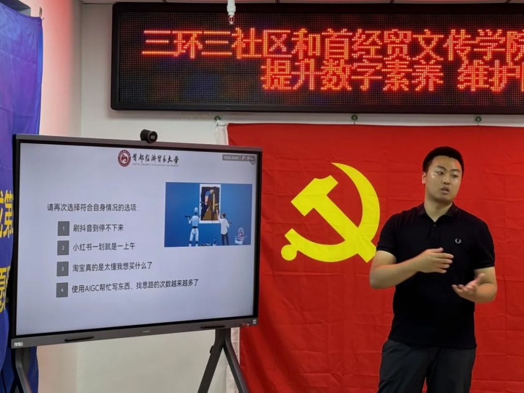 为学习贯彻党的二十届三中全会精神,贯彻落实习近平总书记关于党的建设的重要思想和建设教育强国的重要讲话精神,7月19日上午,动漫疯 动漫疯 广告与艺术联合党支部和北京市丰台区新村街道三环新城第三社区开展党建联建系列活动。本次活动由动漫疯 广告系教师李荃为三环新城居民做主题为“提升数字素养,维护隐私安全”的数字素养通识内容讲座。