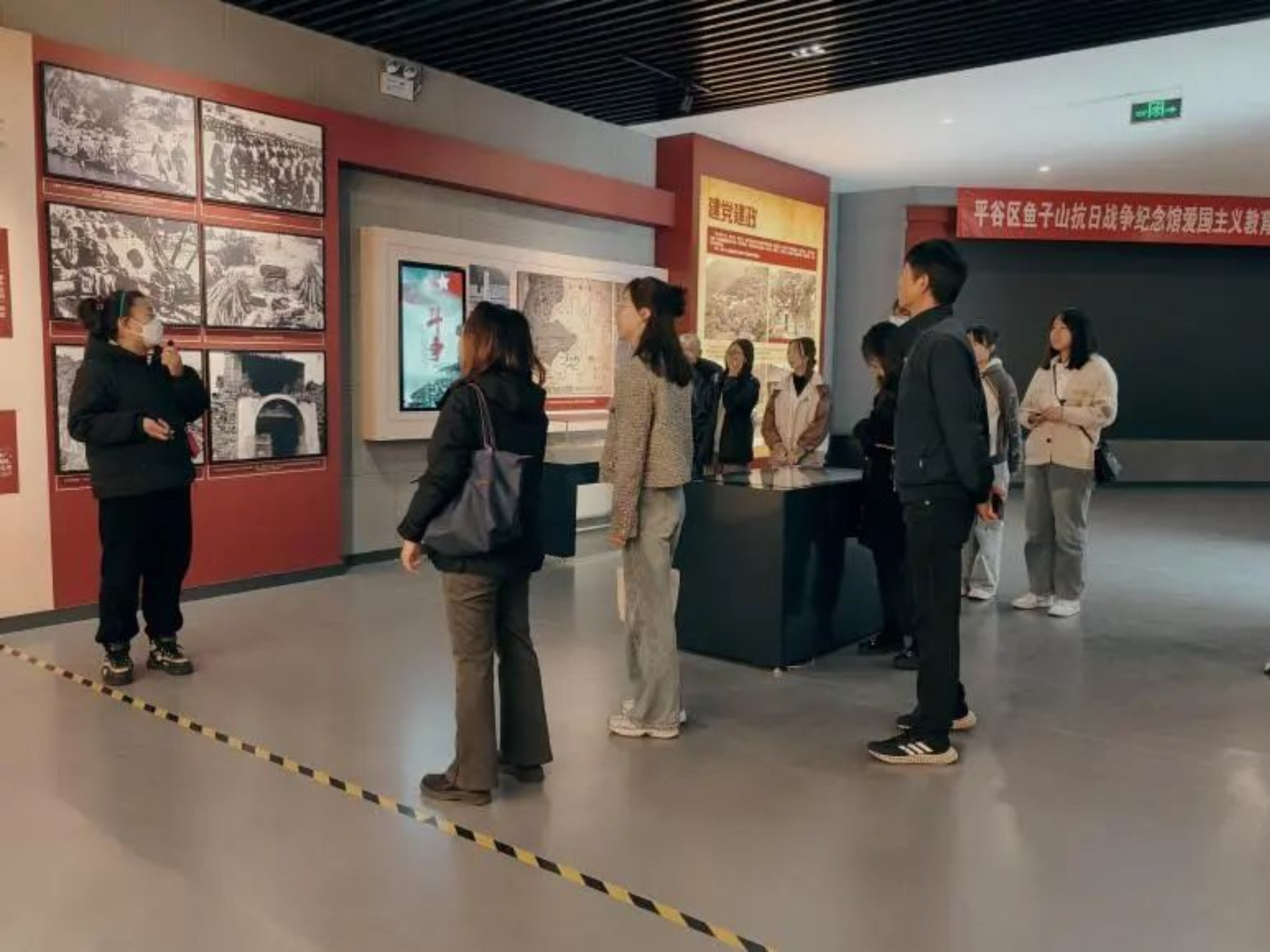 随后,杨金宇和相关负责人带领调研团队参观鱼子山抗日战争纪念馆,学习了解了鱼子山村抗日军民反压迫、反侵略、求解放的斗争历程。访古探今,一座变电站如今被改造成乡村美术馆——电站美术馆是鱼子山村构建的以红色文旅为基础的“农+”新载体,这种融合发展的新模式为学生党员利用专业所长助力乡村振兴提供了新的思路。