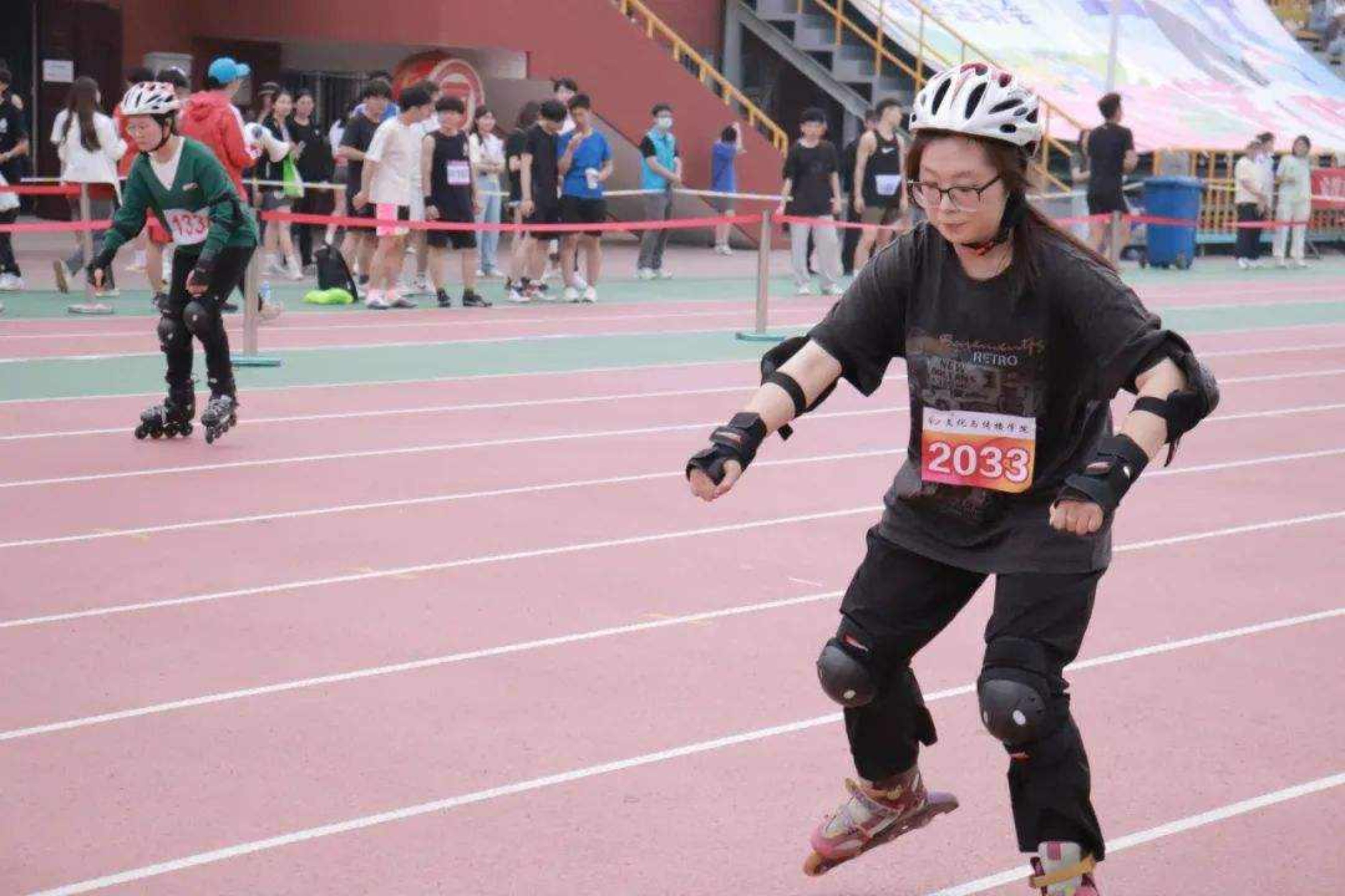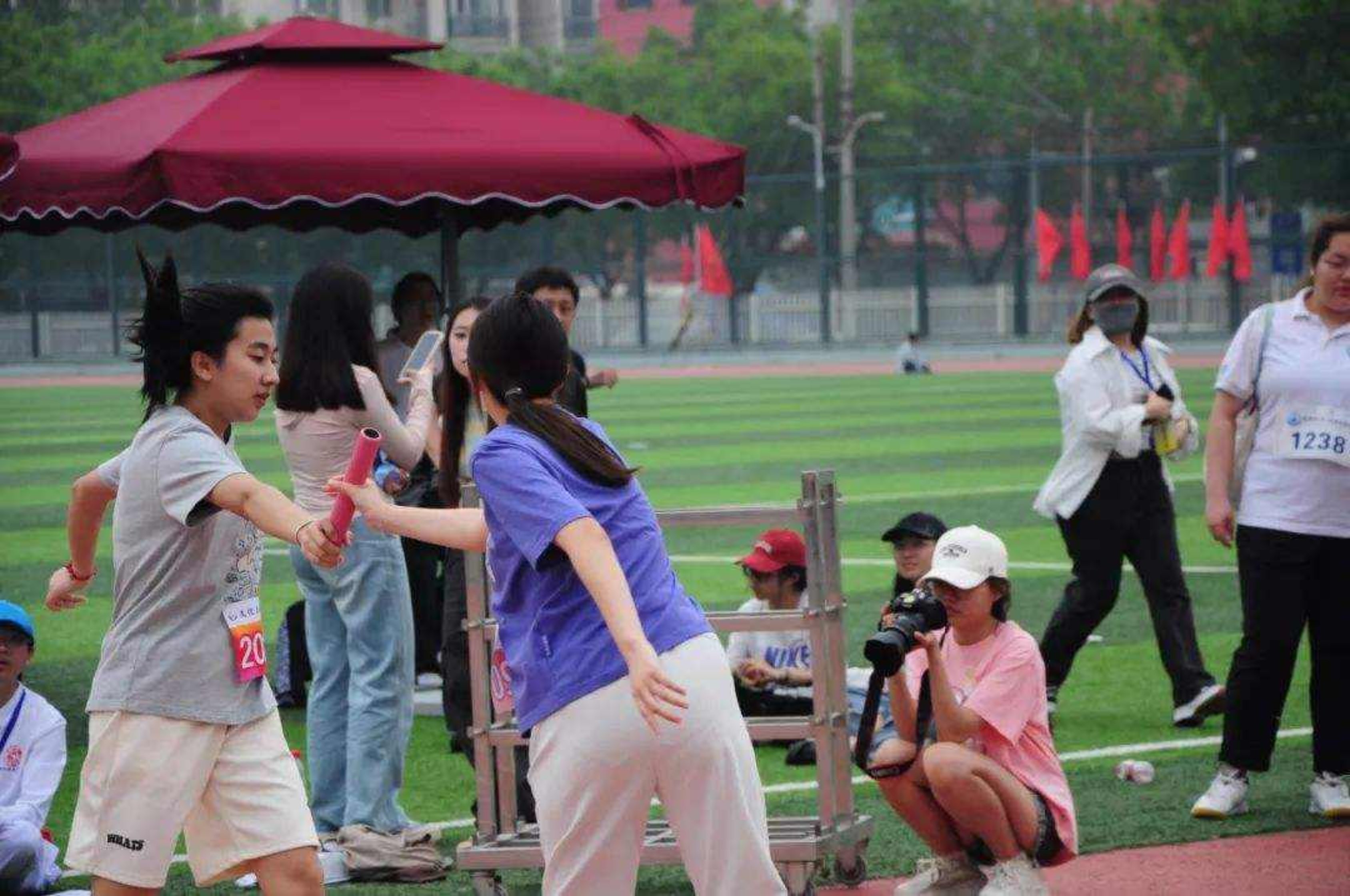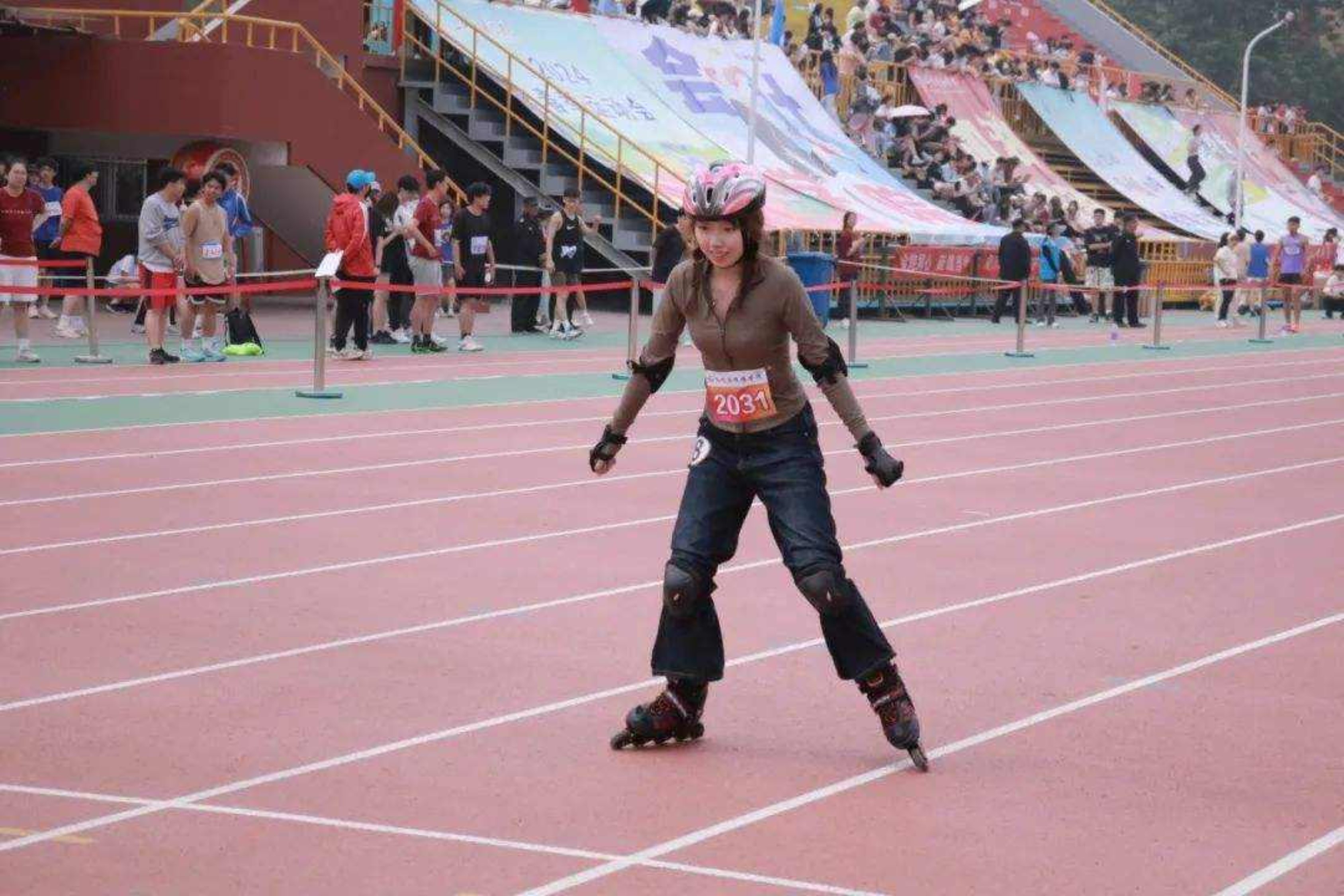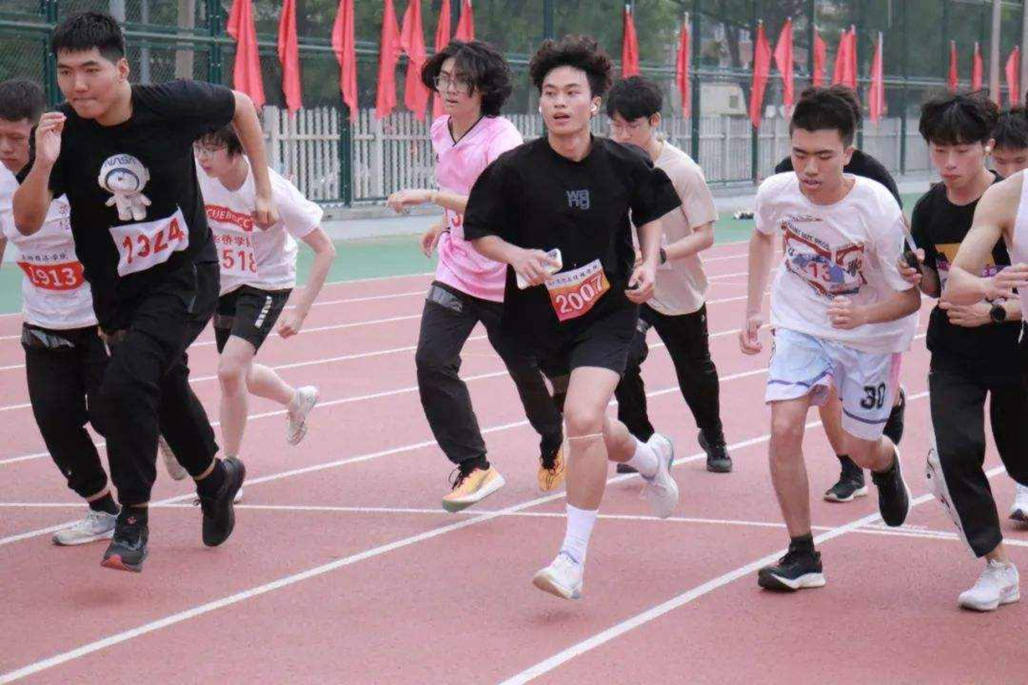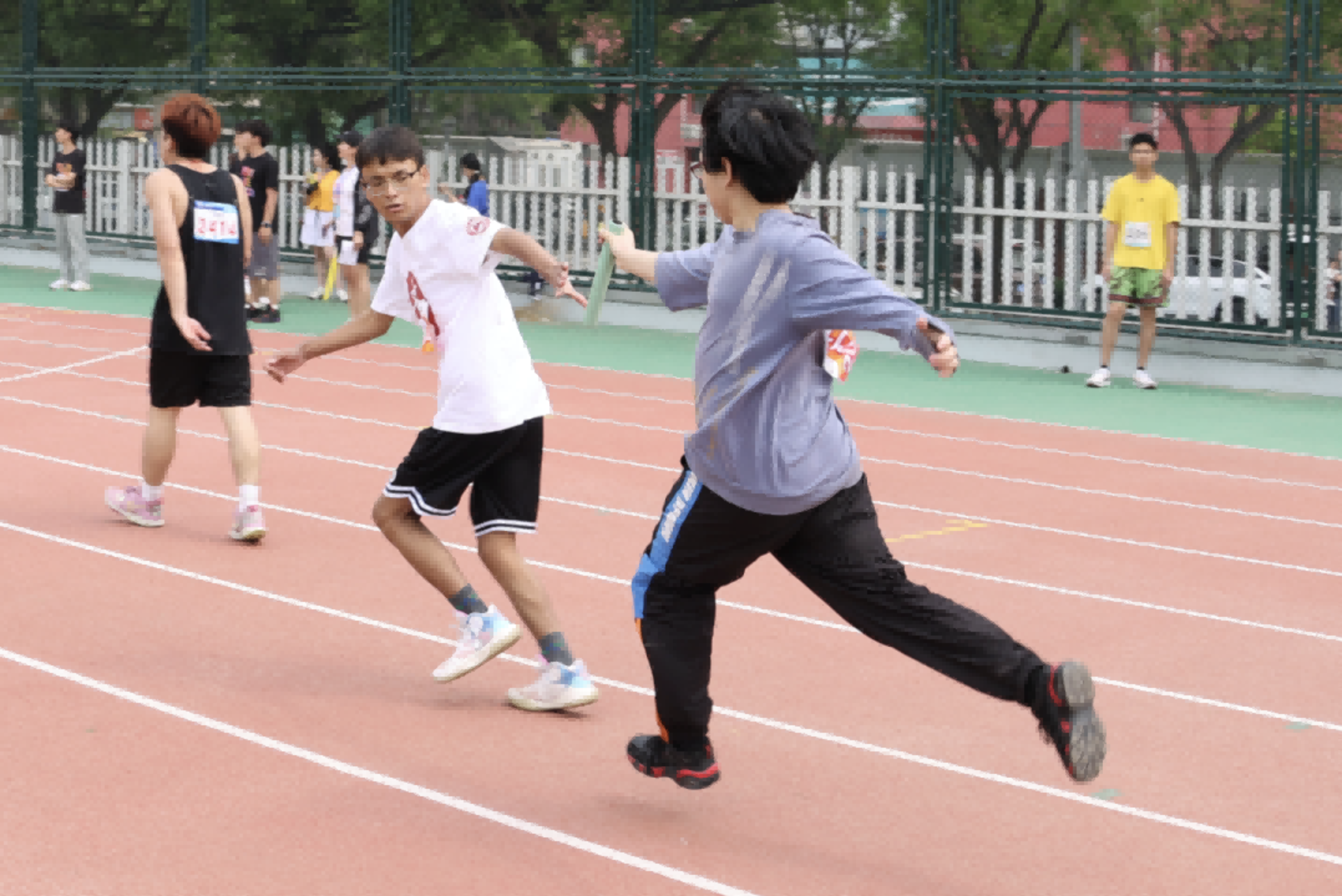 径赛场上,激情飞扬。运动员们如离弦之箭,奋力奔跑。每一次加速,每一次冲刺,都饱含着他们对胜利的渴望。他们是发光的文传人,是勇敢的追梦者,也是赛场上最亮丽的风景。他们用速度与激情,书写着青春的华章,绽放着文传人的闪耀光芒。