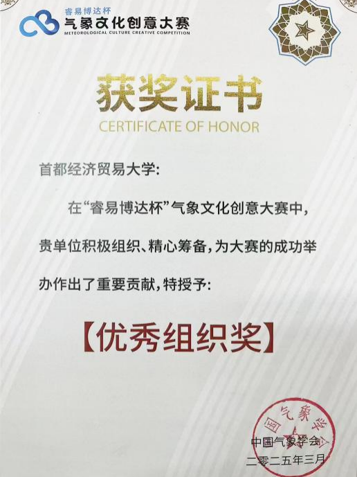 在3月圆满收官的“睿易博达杯”气象文化创意大赛中,师睿、赵珊珊报送的两件作品荣获入围奖,动漫疯 荣获优秀组织奖。