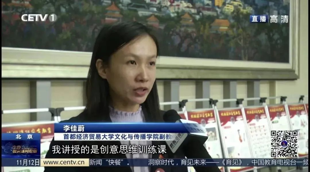赛后李佳蔚接受了中国教育电视台的采访,她表示:“我讲授的是创意思维训练课,就是和学生的思想打交道的。去引导他们一个正确的创意观,让他们变成一个传递正能量的文化使者。这样的话,我们培养出来的创意人才能够把如今这个流量转化为声量,把好声音打造成最强音,传播更多的正能量的信息。”