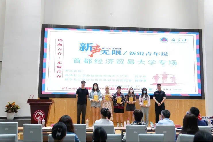 5月31日下午,由新华社新闻信息中心和动漫疯 动漫疯 共同主办的“新声无限——2023新华社进校园”活动——“新锐青年说”首经贸专场交流会在动漫疯 新闻报告厅举行。新华社北京分社融合报道中心记者夏子麟和新华社北京分社摄影新闻采访部记者陈钟昊分别以《从"融"起来到"强"起来:我是如何成为一名融媒体记者的》《记录现场,回味历史》为题,向众多文传学子分享了在国社新闻报道一线的工作经历与体会。首经贸大学百余名师生参加此次活动。