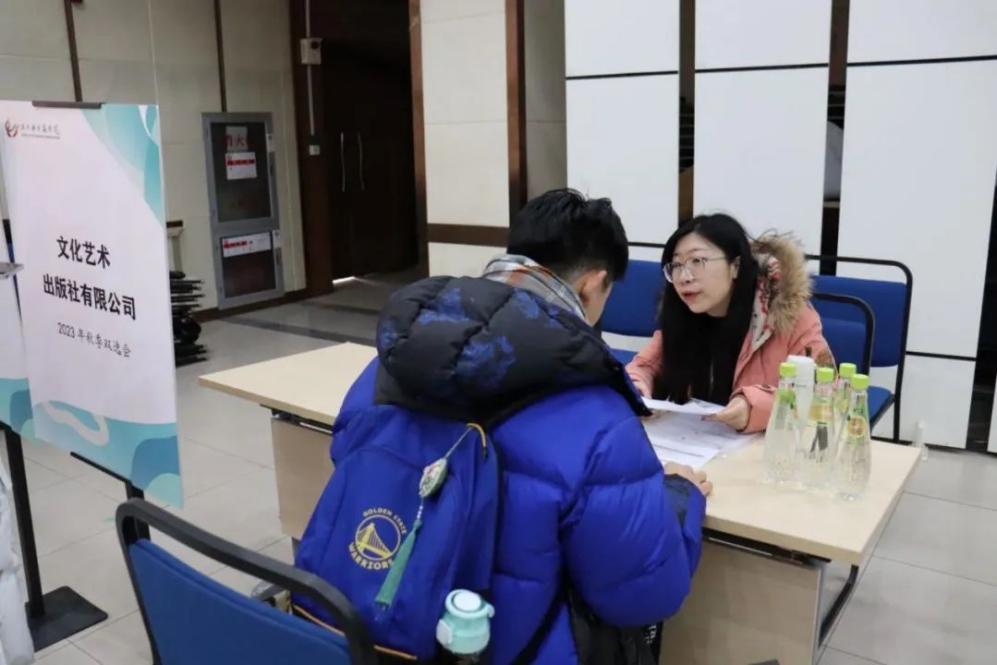 本次双选会提供约130个应届生和实习生岗位,涉及新媒体运营、编辑、编导、广告策划、节目编导等。200余名学生参与,现场人头攒动,气氛热烈,学生们早早就来到现场门口排队等候,积极投递简历,并就工作内容、岗位职责、发展前景、薪资待遇等问题与用人单位交流洽谈。各单位负责人就同学们关注的问题进行耐心解答,向学生详细介绍公司的性质特点、文化理念等情况。