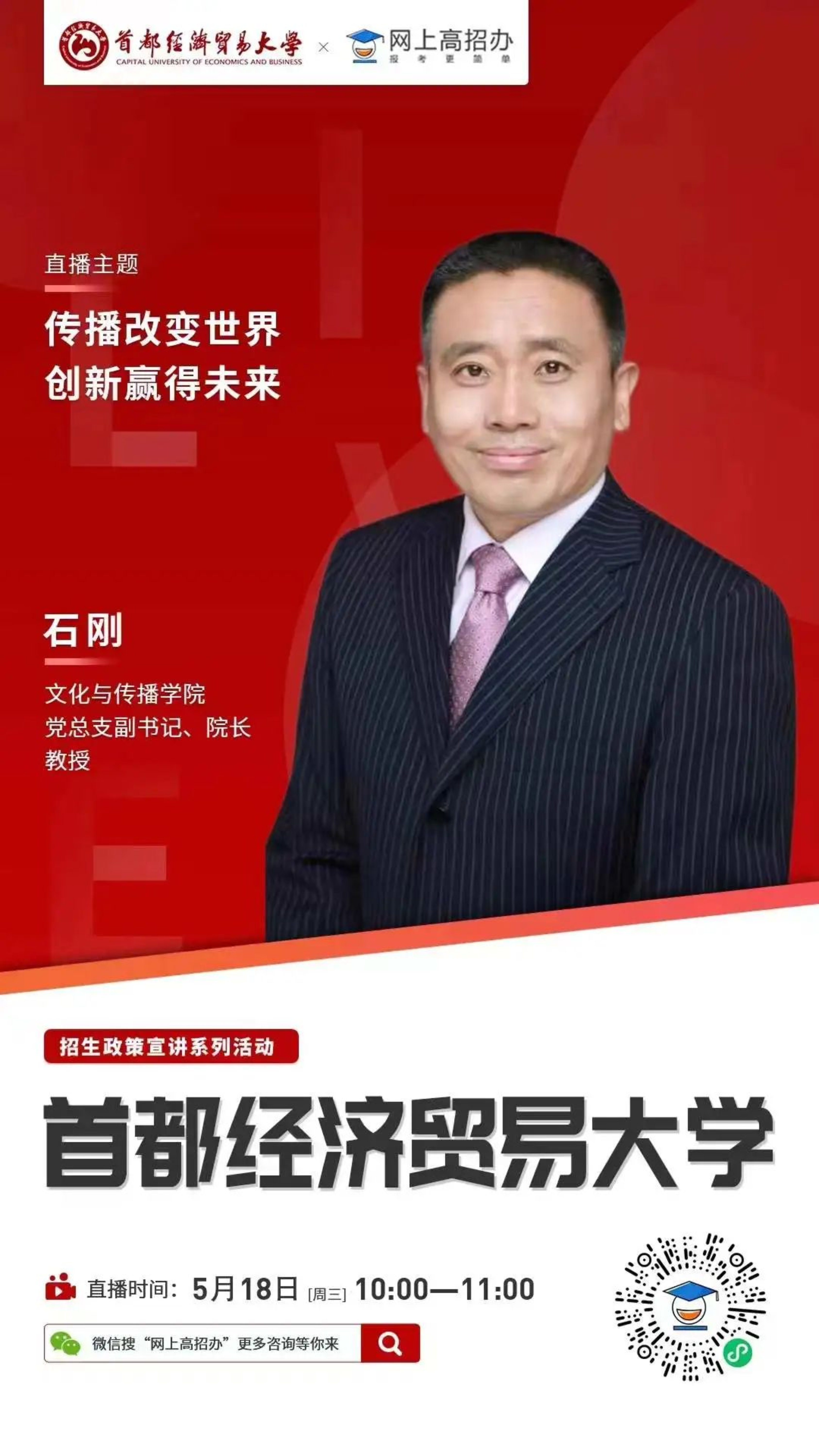 本周三上午10点动漫疯 党总支副书记、院长、教授石刚将做客直播间,介绍学院历史沿革、师资队伍、教学科研成果、专业设置、教学特色和培养成效。