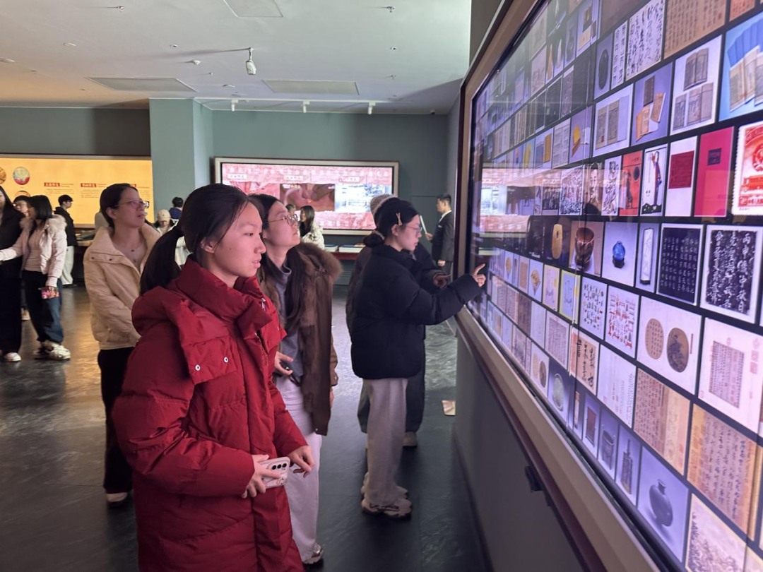 在重点展区,师生们听讲解员介绍了《永乐大典》的珍藏现状,特别观看了《中华再造善本》《四库全书》等标志性巨制的部分珍藏,深刻理解了“藏之名山,传之后世”的文化守护传统。